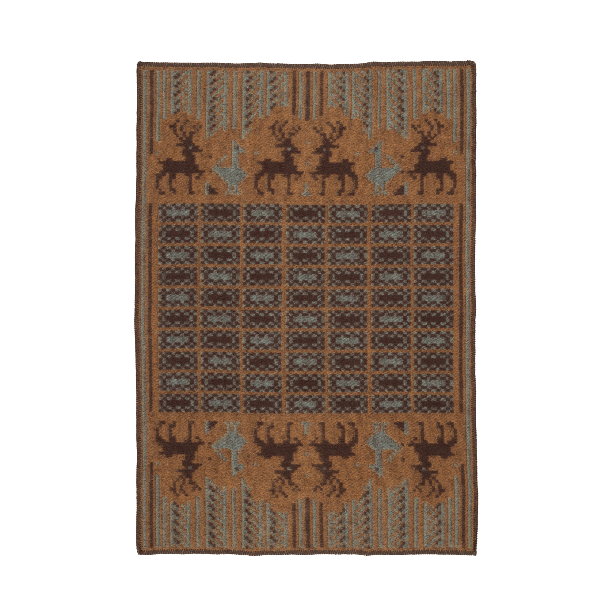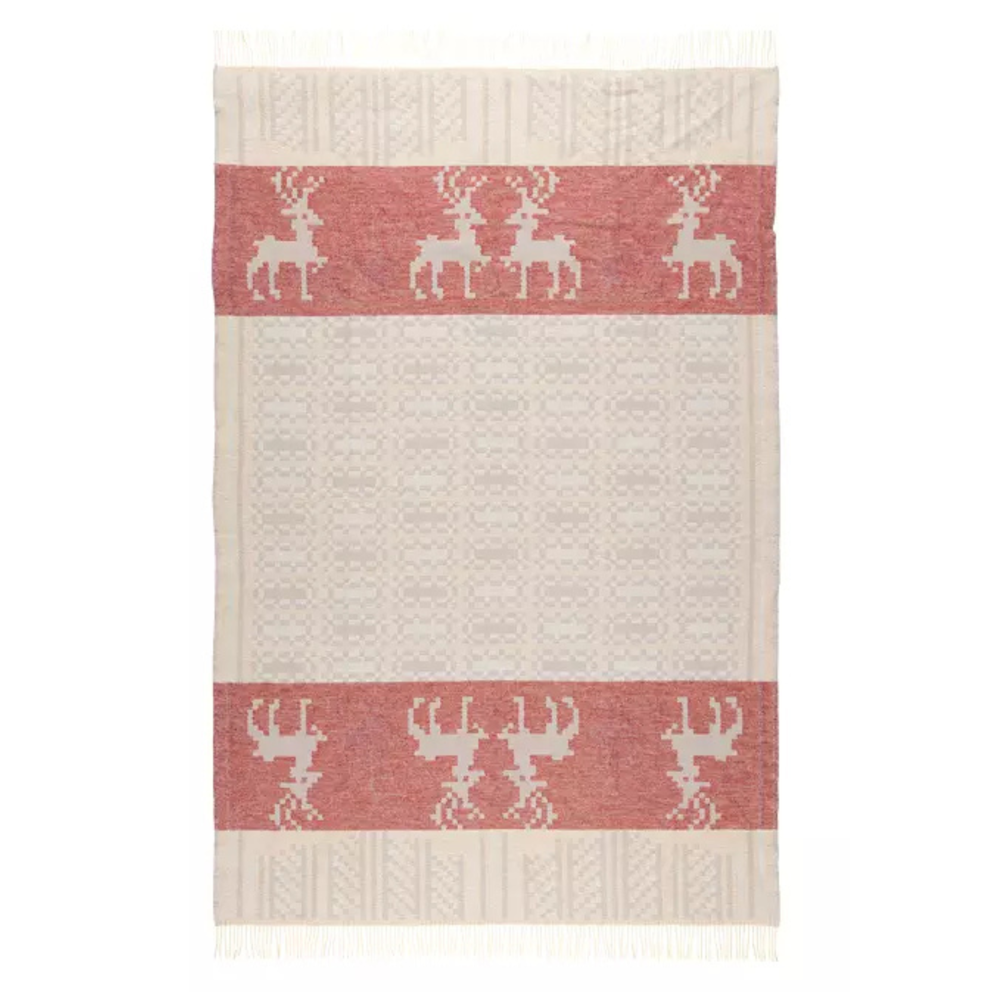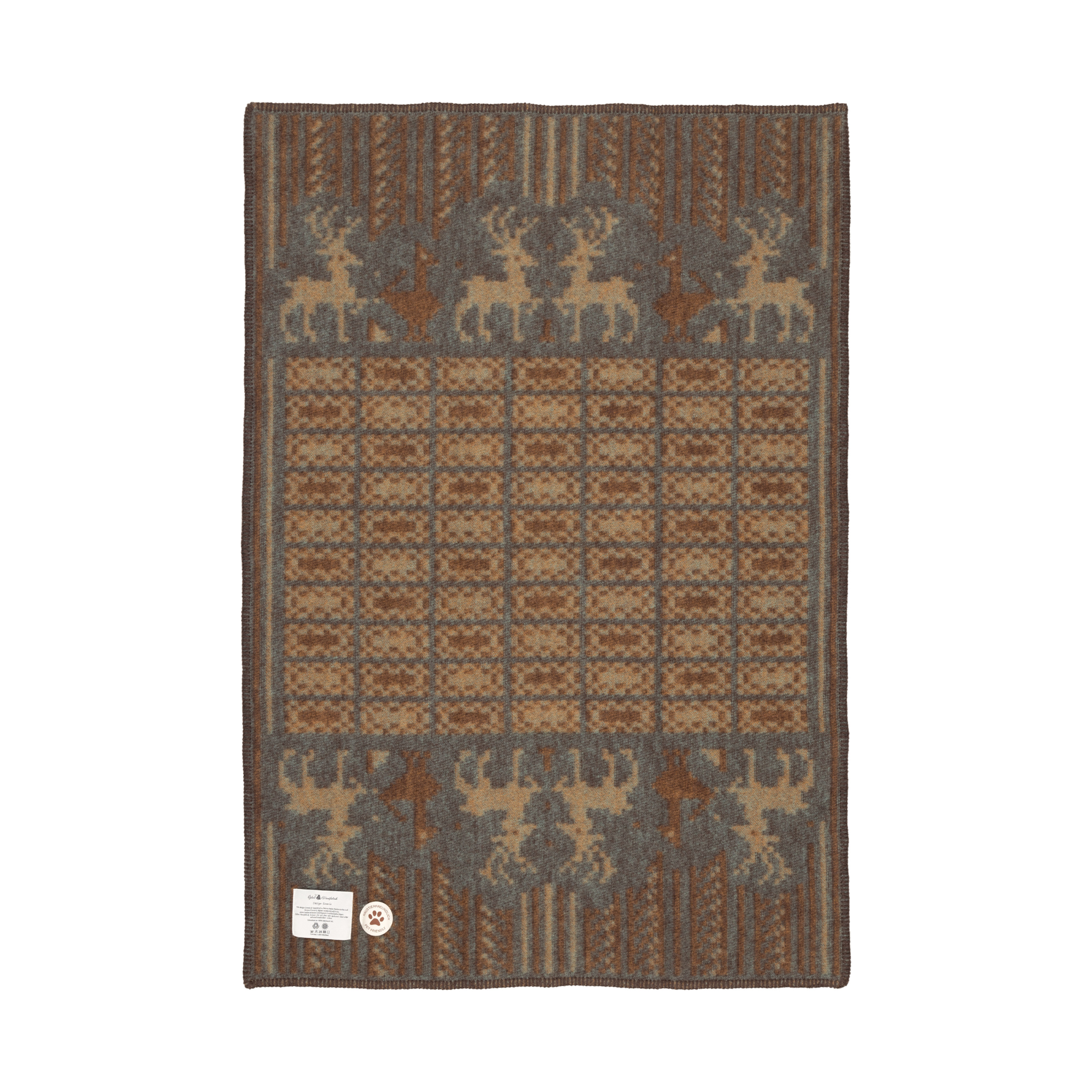 This wool blanket woven in Design Scania is inspired by Märta Måås-Fjetterström and her life´s work. Skånes beautiful and impressive crown deer and then colored in traditional colors. At the Öjbro Vantfabrik we have made it our goal to keep various nordic pattern traditions alive.